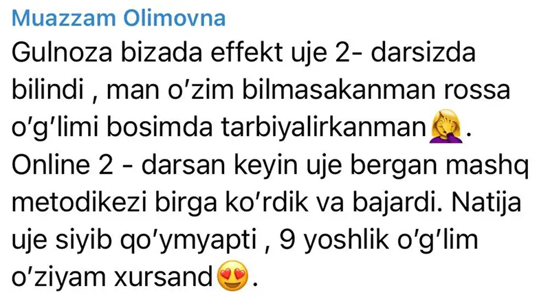 “Men yomon ona emasman!” kursi sizga faqat nazariya emas, amaliy natija beradi.